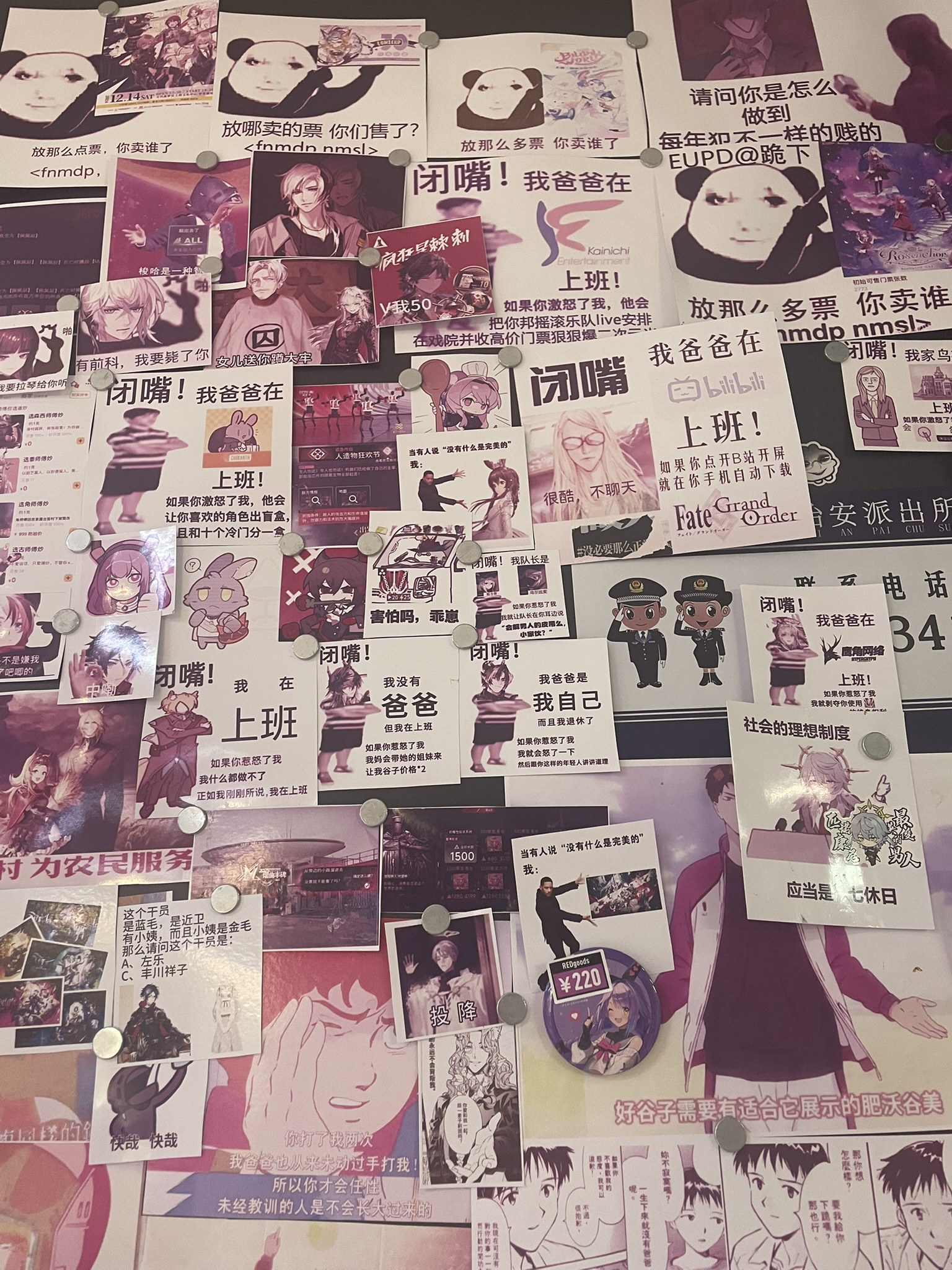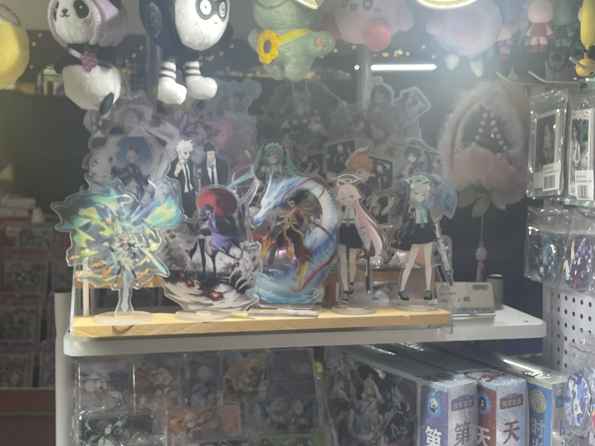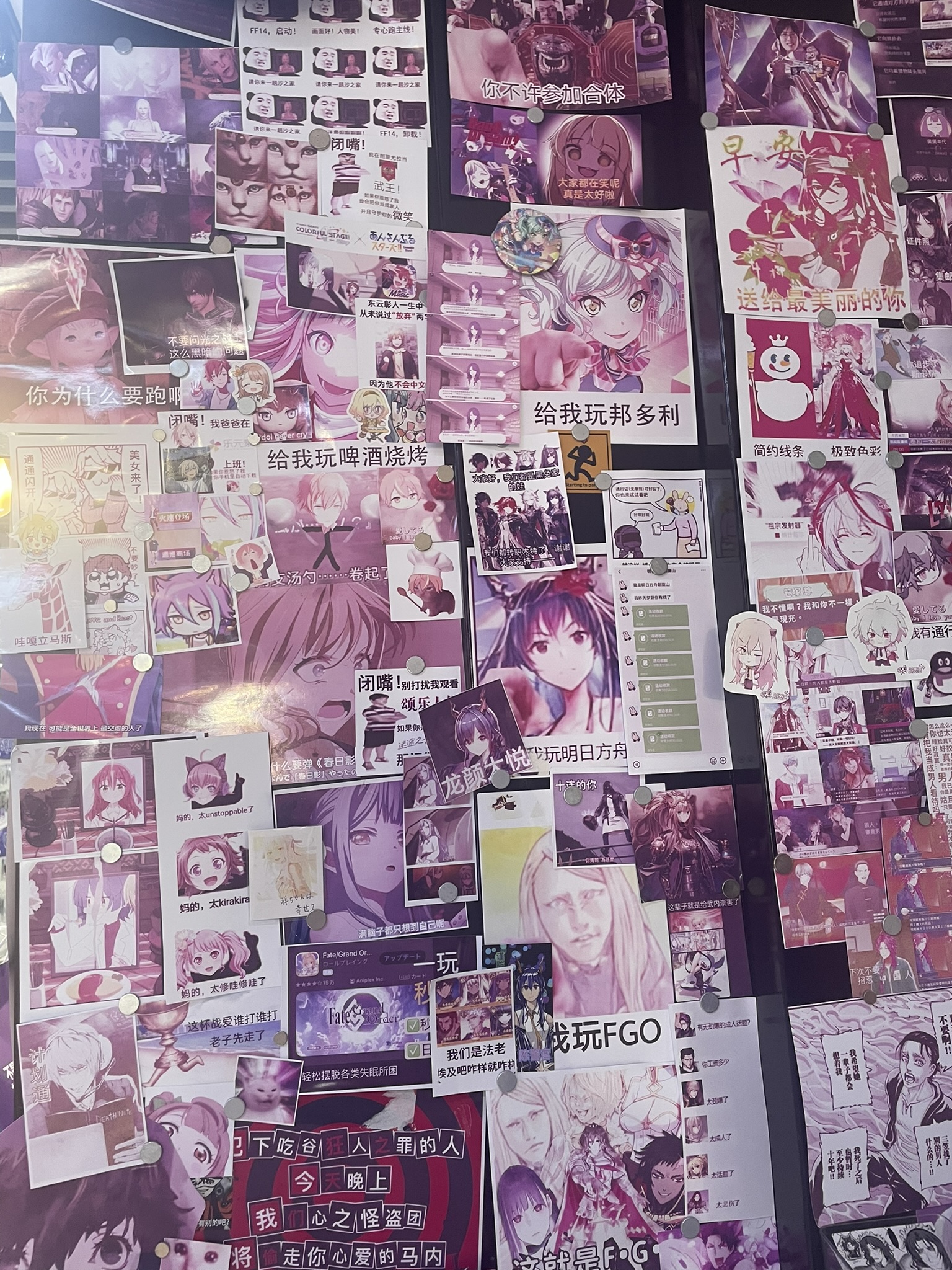 this one anime store had a wall plastered full of chinese gacha game-related memes