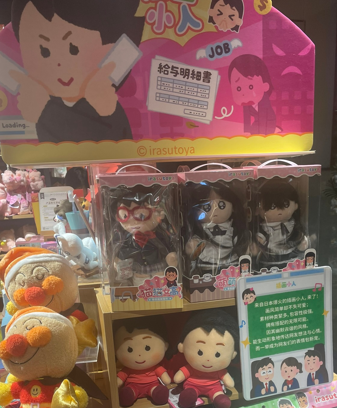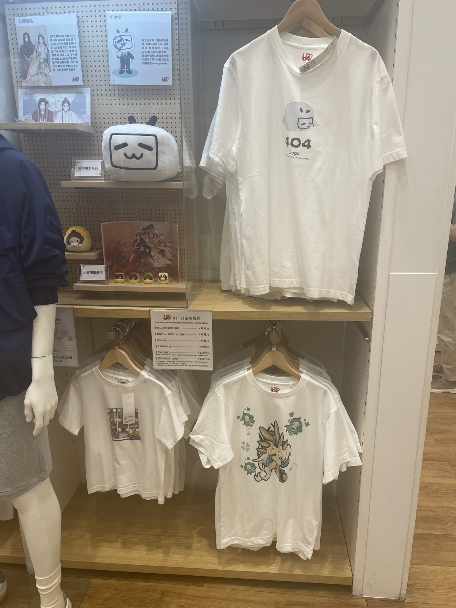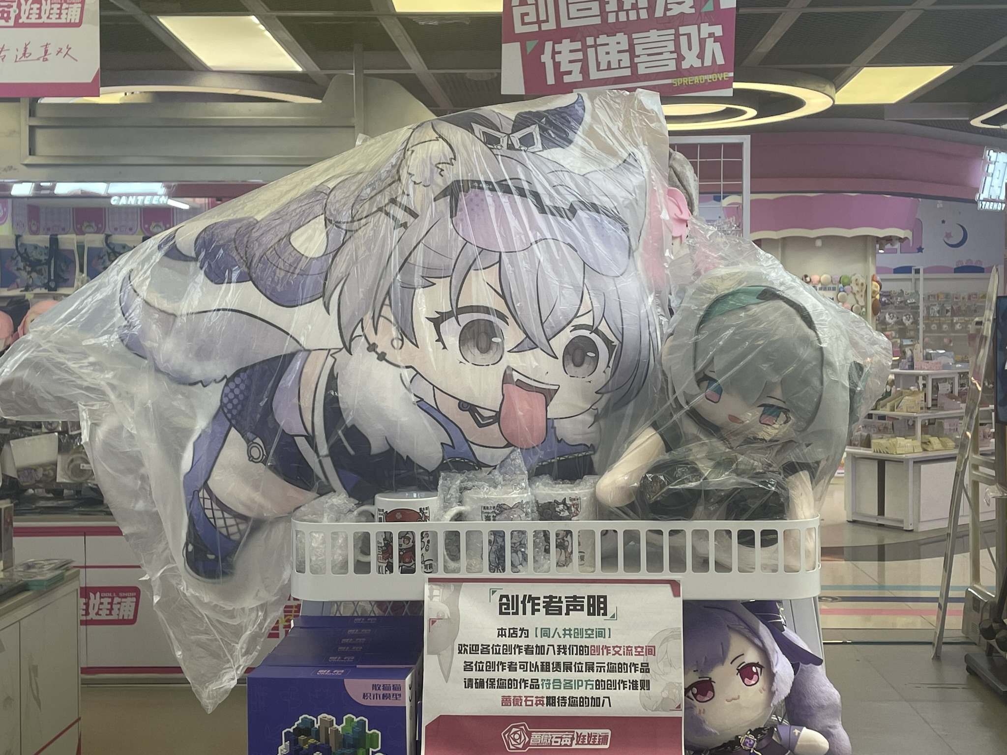 this one anime store had a wall plastered full of chinese gacha game-related memes