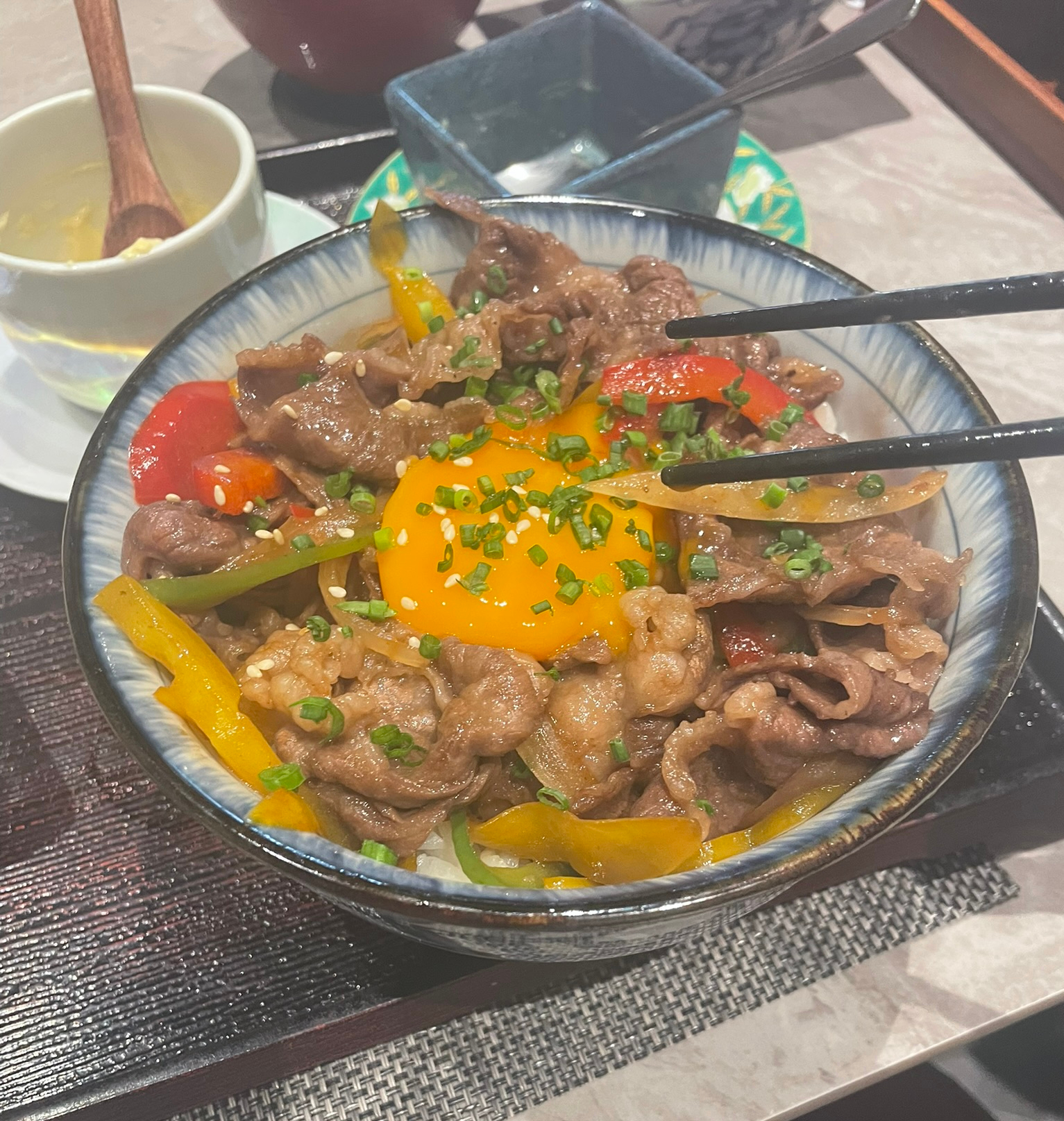 this was the main course, some beef, rice, and a raw egg. v good!