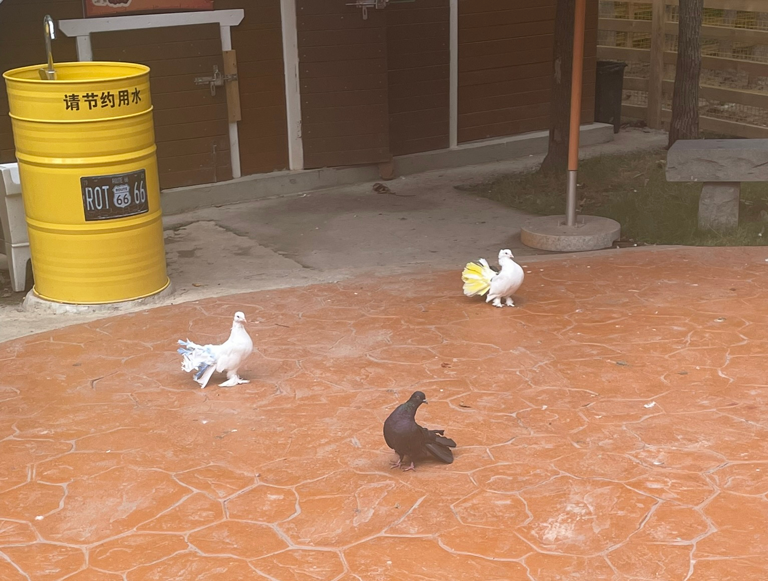 some colorful pigeons